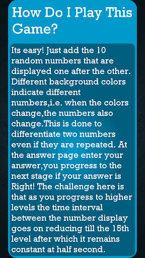 is a simple number game where you add 10 random numbers that appear one after another. Isn't that simple?