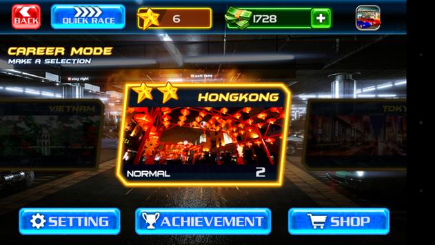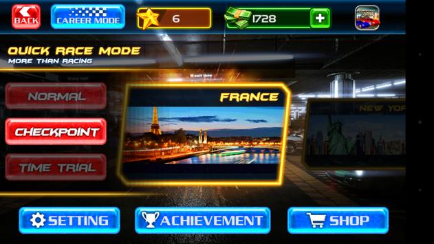 You can race around multiple cities including Vietnam, Hongkong, Tokyo, France, New York, Nevada.