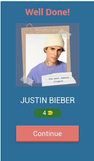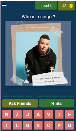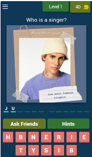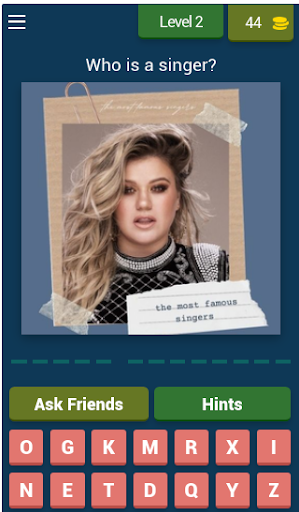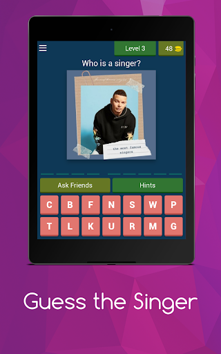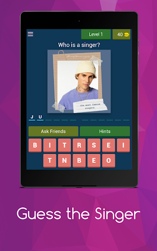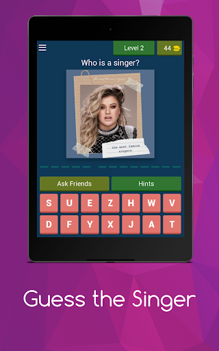Guess the Singer In the app, you can guess all the singers and bands by looking at their pictures.!? Test it with this music quiz easy to play and super fun. The game is more than fun, and it is about solving general information, puzzles, broken words and a lot of things inside the smooth game