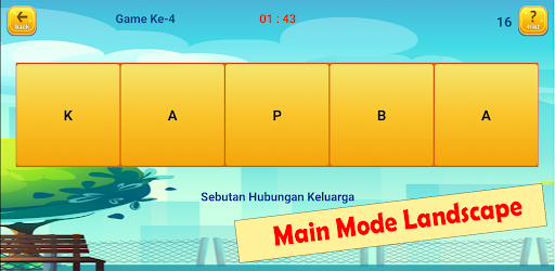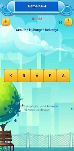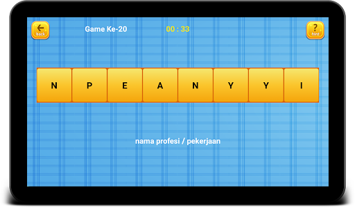 Każda gra ma ścisły limit czasu.Masz tylko 2 minuty na ukończenie każdego poziomu.To przetestuje twoją szybkość myślenia i kompilowania słów.Nie pozwól, aby czas mija tak!Możesz zebrać najwyższy wynik i spróbować poprawić swój ranking.W konkurowaniu z innymi graczami w całej Indonezji i bądź najlepszy!Możesz zacząć od poziomu początkowego i stopniowo zwiększać poziom trudności zgodnie z twoimi umiejętnościami.To zapewni Ci wyzwanie i nadal się uczą.Będziesz trenować swoją kreatywność słowami, zwiększając słownictwo indonezyjskie i zrozumienie oraz praktykując szybkość myślenia w ograniczonych sytuacjach.