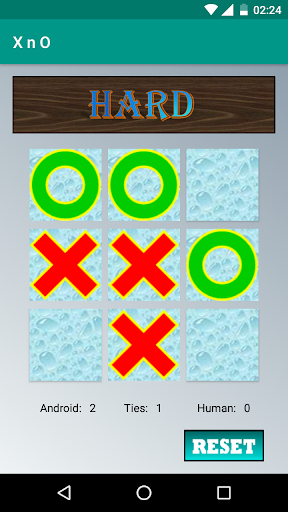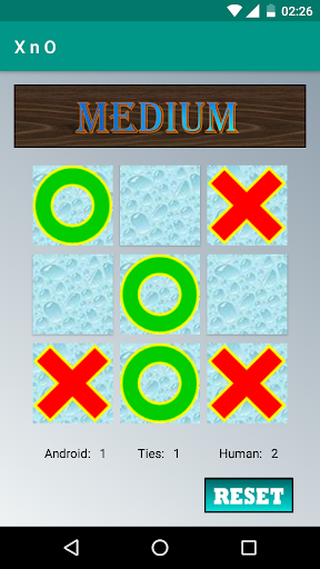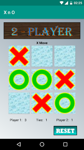 X and O is a fun game where each player takes turns by marking the spaces in 3x3 grid. The player who succeeds in placing all of their marks in a horizontal, vertical or diagonal row wins the game. The ONE PLAYER game is played against Android. The three levels of difficulty gives you brain teaser challenges. The TWO PLAYER game is played between humans. Try your best to beat your opponent and be the winner!!!