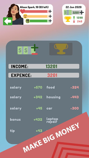 , trade in the stock market and win money at the casino, buy houses, cars, and so on, do whatever it takes, but become a CEO before your character dies of old age.