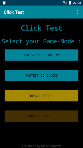 Speed Test is a collection of mini-games that test your clicks' speed and reactivity. You can calculate your clicks per second or your reaction time and then compare them with the results from around the world to show others how fast you are!