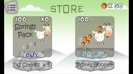 - Double jumps: you can double jump by tapping while your goat is in the air ,and you have some springs left.. :)
