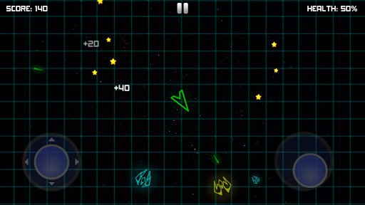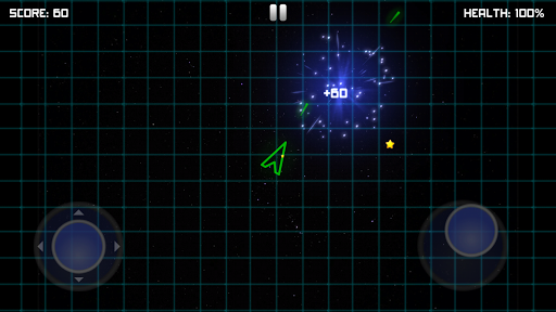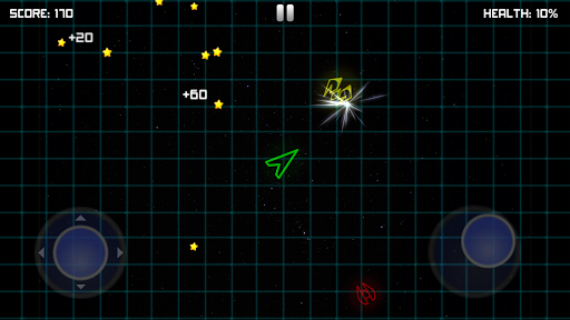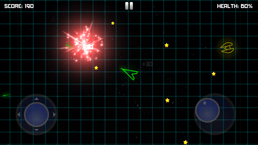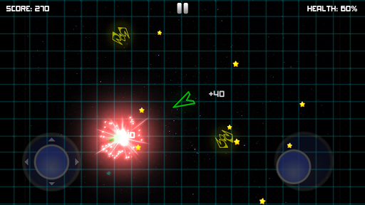 Blast down all the opponents and asteroids before they impact on your neon spaceship - be careful they can appear anywhere.