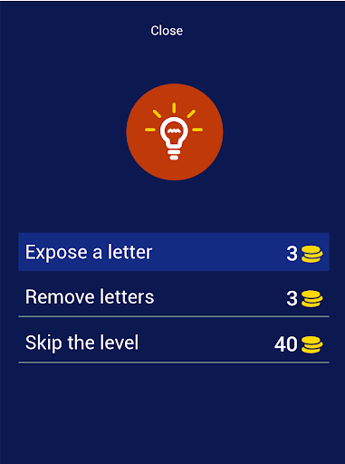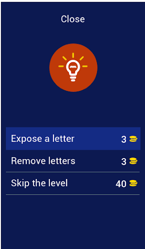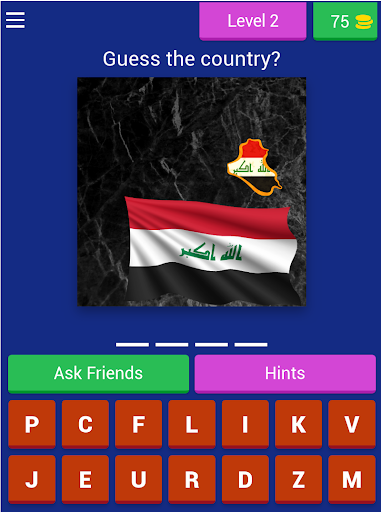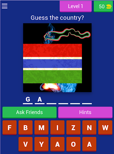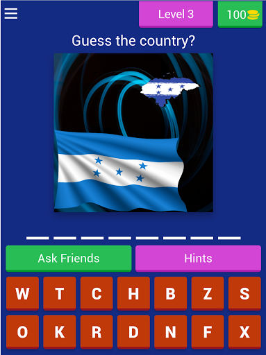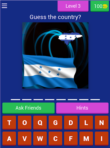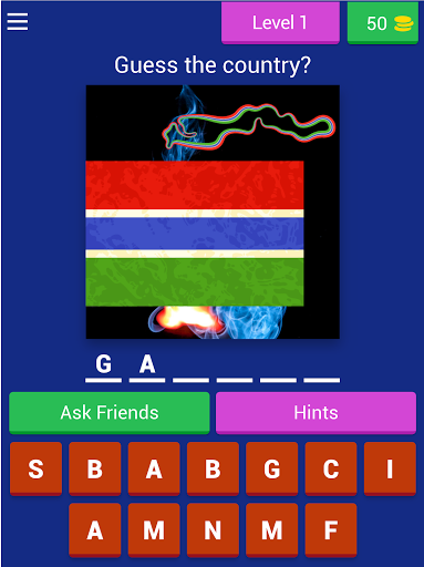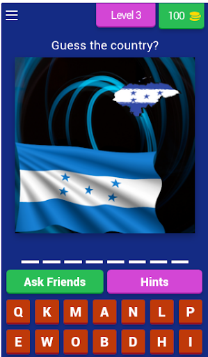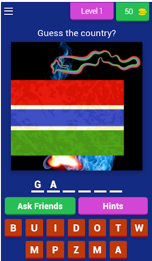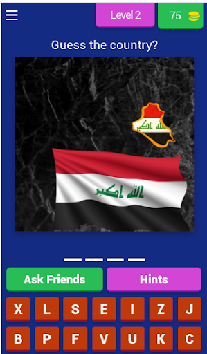In this game, you guess the country that owns the flag, if you are able to get the correct answer, you are awarded a coin, in the coin, you can make use of the coin to get a hint or remove a letter.