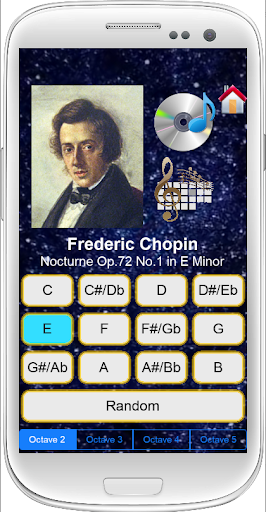 In the Practice Mode, user can listen to the selected notes on its own, as well as a well known Classical piano piece that begins distinctively with that note. While listening repeatedly between the note and the Classical piano piece, the user can gradually establish the neural net required on the brain and improve on the ability to identify the note. The Classical piano piece is also identified with its title and composer to expand the user's knowledge in Classical music.