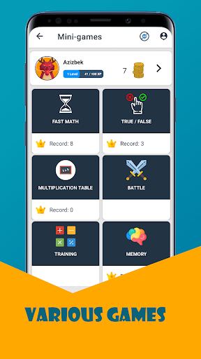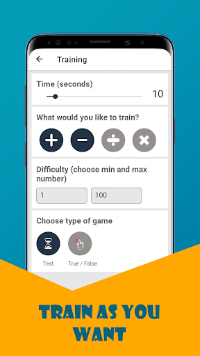 - Training game with flexible settings for math learning: ( Multiplication, Addition, Subtraction or Division), choose the difficulty, timer, type of the game and solve problems, math equations