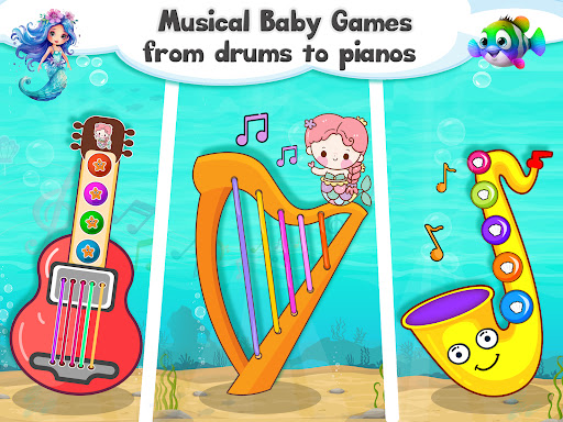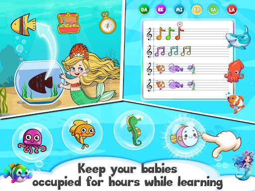 Search for mermaid's hidden objects hidden in the vibrant underwater scenes. Let the giggles flow as kids pop bubbles to reveal delightful surprises and earn rewards. Learn about marine life, colors, shapes, and various musical instruments, all while having hours of fun.