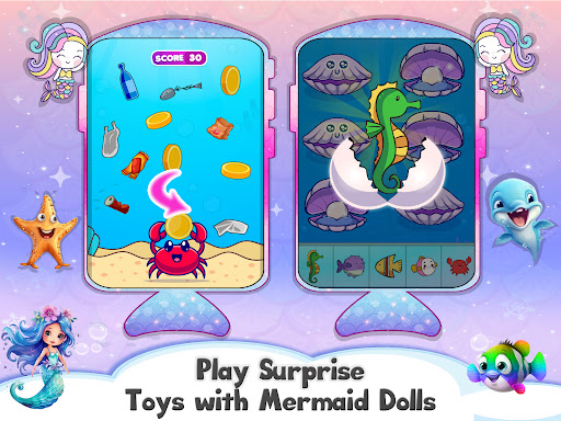 Princess Toy Baby Mermaid Princess Games for 1 Year Olds specially made to develop memory and logic in toddlers. Play with fun surprise toys and mini games with tiny virtual pet baby mermaid. Girls toy princess babyphone with lively and colorful interface with cute little mermaids and surprise dolls.