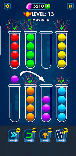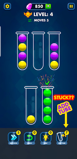 • Tap any tube that will move the ball to the tube with the same color ball.