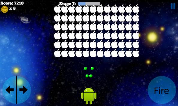 Inspired by the classic "Space Invaders" in this game you are in the role of Android and have to shoot at apples, collect coins and upgrade Android's offensive capabilities.