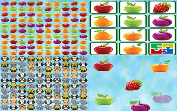 1. Permainan persamaan tiga atau lebih Buah atau Hewan (Klik Buat yang sejajar atau sama dalam tiga atau lebih Buah dan Hewan yang sama untuk mendapat angka/poin).