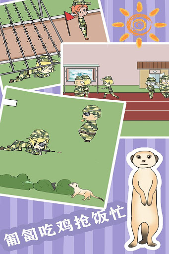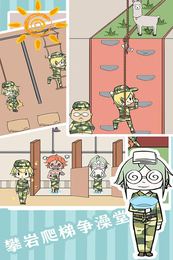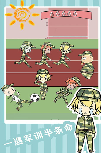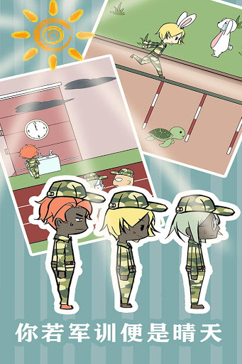 什么?开始军训了? 一遇军训半条命,拜萧求雨行不行 匍匐吃鸡抢饭忙,攀岩爬梯争澡堂 你若军训便是晴天。 快帮我想想办法,躲过严酷的军训吧! 玩法超简单: 点击你觉得任何可能帮助到主人公的地方,拖动你获取的道具帮助主人公完成获得休息。