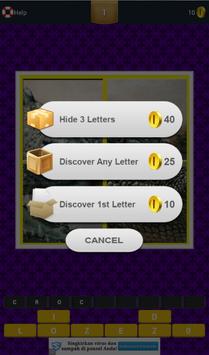 If you were right in guessing there will be the addition of coins ( 15), if not there will be a reduction of the coin (-5). You can only make three errors in guessing (just had 3 ' lives '), if more then it will go back to the beginning of the game. If you stuck in the game you can use the three HELP that are available on the game. There are hide 3 letter, discover any letter, or discover 1st letter.
