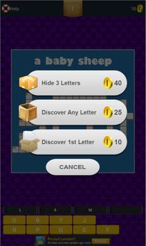 If you were right in guessing there will be the addition of coins ( 15), if not there will be a reduction of the coin (-5). You can only make three errors in guessing (just had 3 ' lives '), if more then it will go back to the beginning of the game. If you stuck in the game you can use the three HELP that are available on the game. There are hide 3 letter, discover any letter, or discover 1st letter.