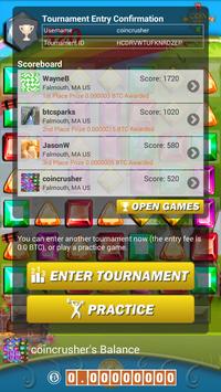 So you think you are pretty good at those match three diamond and jewel crush games. Well, now you can put those skills to good use. Bitcoin Crush is a quick-action game where you try to score as much as you can in 40 seconds. You compete in tournaments against three other players, or directly against friends in head-to-head competitions.
