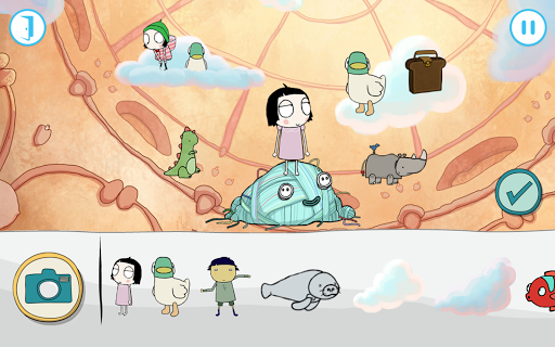 This app will ask for permission to access the camera and photo library of your device. The camera is used to take a photograph of the player for their user profile, which is used to track and retain progress through the game – you may also choose from a number of characters from Sarah & Duck to represent the player in the user profile. The photo library is accessed in order to store pictures the player may take of the parks they can create in the final activity of the app.