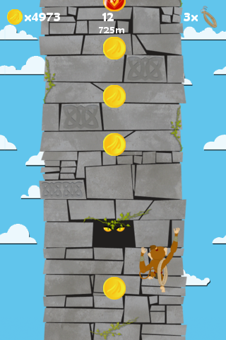 Meanwhile you are collecting coins and avoiding traps. Goal is to go highest you can and collect most coins.