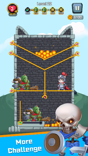 But this journey is not smooth, the orcs and basilisks have caused a lot of trouble for the hero along the way, you need to help the hero to pull the pin according to the correct steps in order to obtain the treasure and save the beautiful princess. Not good, not only monsters, but also terrible traps, poisonous gas, lava, rolling stones will stop the hero, come and help the hero through the difficulties.