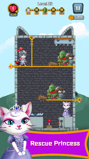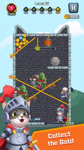 Welcome to Save The Cat-Pull The Pin game games! In this game, you need to help the hero to defeat the monster, save the princess and discover the treasure by pull the pin !