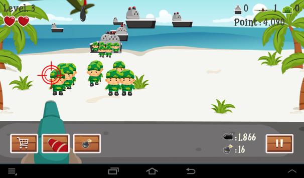 Just imagine that The beach Normandy is being attacked by thousands of strange invaders and you have two choices: stand up and use the available weapons to save the beach head in Normandy battle site or do nothing and see your beloved land taken. There are twelve levels with increasing difficulties to challenge you - the heroes of beach head.