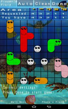 - You can set the board size from 1x2 to 12x12 and the number and size of worms.