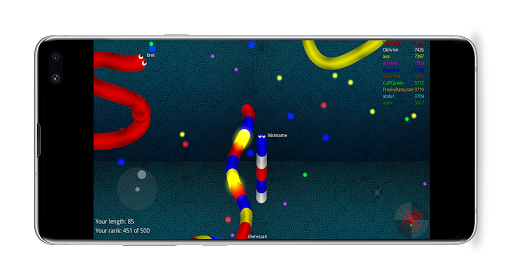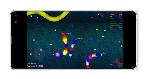 Slide ahead of other snakes to kill them and eventually eat their light dots.