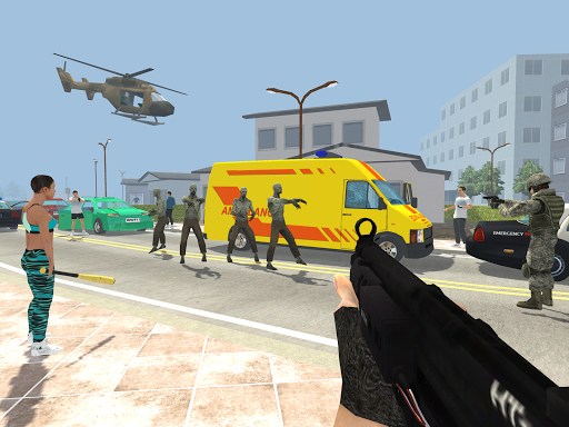 Our games features a realistic model of city, along with all cars, people and their interactions. People walk around, talk with each other, use phones, sit on benches, and, first of all - they fight with zombies!