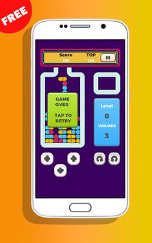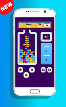 Dr pills VS viruses : mario legacy is like old fashioned classical block puzzle games but with new beatiful graphics and game play style. Your mission as a doctor is to kill bad viruses using the dropping capsules (pills), you have three enemies to eliminate :