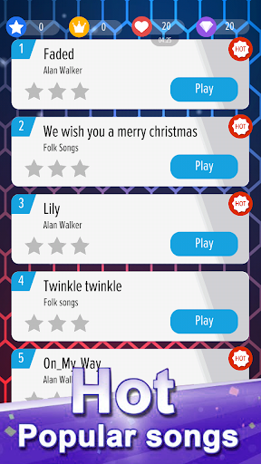 Press the piano black squares continuously to play the music. Watch out for the white tiles and don't miss any black piano tiles to complete each song!