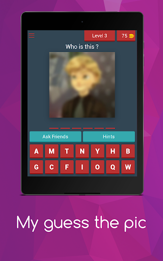 The idea of the game: Guess the picture and write the answer in a correct spelling way, and each new level you win 30 coins, there is a way to help you as writing the first letter or skipping the entire level