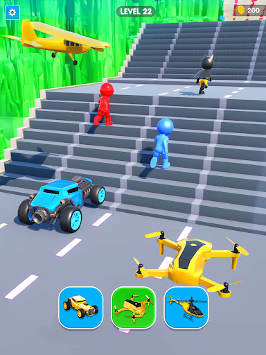In the Shapeshift transform race, your fast reflexes and skills guide you through multiple challenging tracks with hurdles. Different vehicles bring advantages and challenges in shape run. Master switching for the shape shifting race. Collect power-ups, boost speed, and beat rivals as you race through each track in shift shape game. Overall, this is an addictive and dynamic Shapeshifting race to kill your boredom!