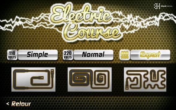 Electric Course is a game(set,play) of route(course) requiring precision and composure in manipulation of the stilet of Galaxy Note. You have to cross electrified circuits by leaving of the zone of departure, represented by an arrow, until the arrival where represents OK.