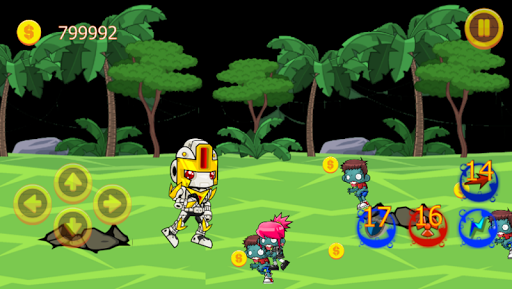 Collect gold coin treasures to buy robot armies in conquering zombies. Do not let them enter the city!