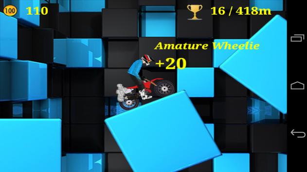 ** 8 stunts [Wheelie, Stoppie, Flips and many more] to perform and to earn coins.