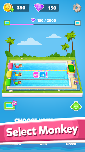 Choose a monkey and try to be the first! There are a lot of fun activities which need to be completed. Be ready for a real rush in swimming pool tournament.