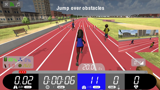 Run on your treadmill or pedal on your exercice bike to push your avatar through one of the 5 environments : road / track, steeple (with hurdles), trail, castle or space.