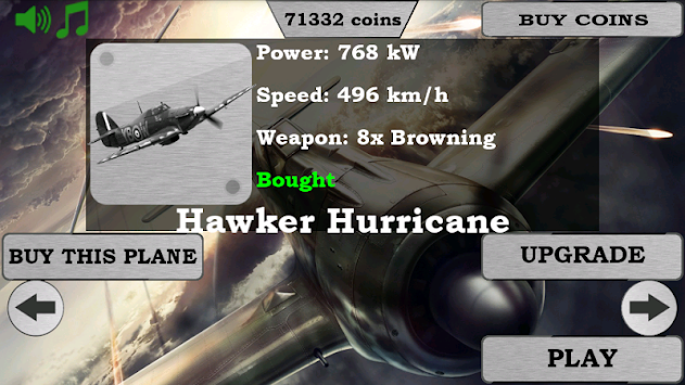 Clear and detailed graphic, dynamic actions, a few types of airplanes from second world war , upgrades and great sounds!