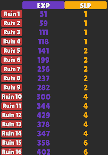 👑👑👑 PVE Tips show you about Experiences and SLP you will get when you completed these ruins.