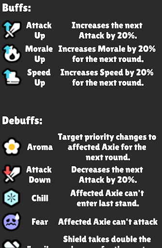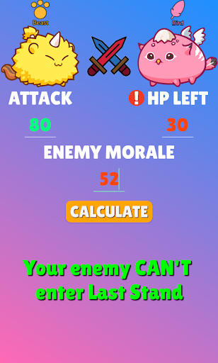 👑👑👑 Axie Tips help you calculate damage when attacking your enemy consists of buffs or debuffs, class, body,... Choose your Axie and enemy Axie, then input your Attack and enemy Defend, click body if your Axie has the same body with your class, choose buffs or debuffs. Finally, press Calculate to show absolute damage to the enemy. It is so helpful for gamers in PVP