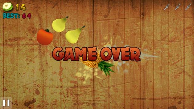 Hold the finger in your hand and sweep it in the air toward the fruit to cut and got score. When you cut a bomb ,you will lost your score, and enjoy especial effect. Do not need to be hurry if you miss the chance do try again and sweep it with good angle and got the expertise and lot more. Keep in control to your mind and not to be a panic if you loss try it again and again.