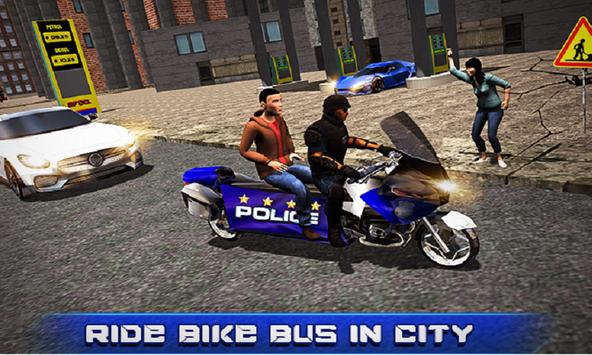 Are you fan of motorcycle riding and public transporter game? Then you must checkout Bus Bike Passenger Transport: US police Motorbike newest in its kind. Enjoy driving long bus bike rider as police officer transport passenger from crime scene with motorcycle riding 3D bus bike simulator game with escaping city traffic with motorbike rider challenges.