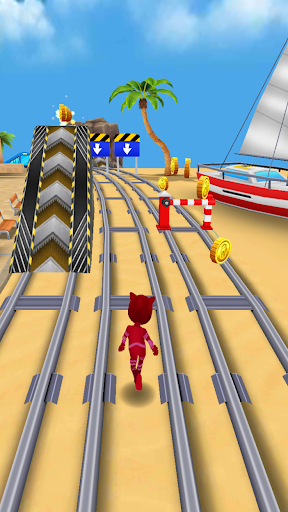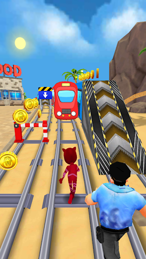 Select your super subway hero from the menu and start masks running adventure. Save the hero from police inspector and run as fast as you can. Collect pj coins and rush through the trains, dodge the hurdles and beat the traffic signals.