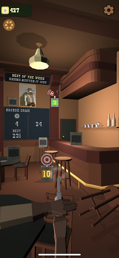 The scene is that you are in a saloon and practicing your shooting skills.