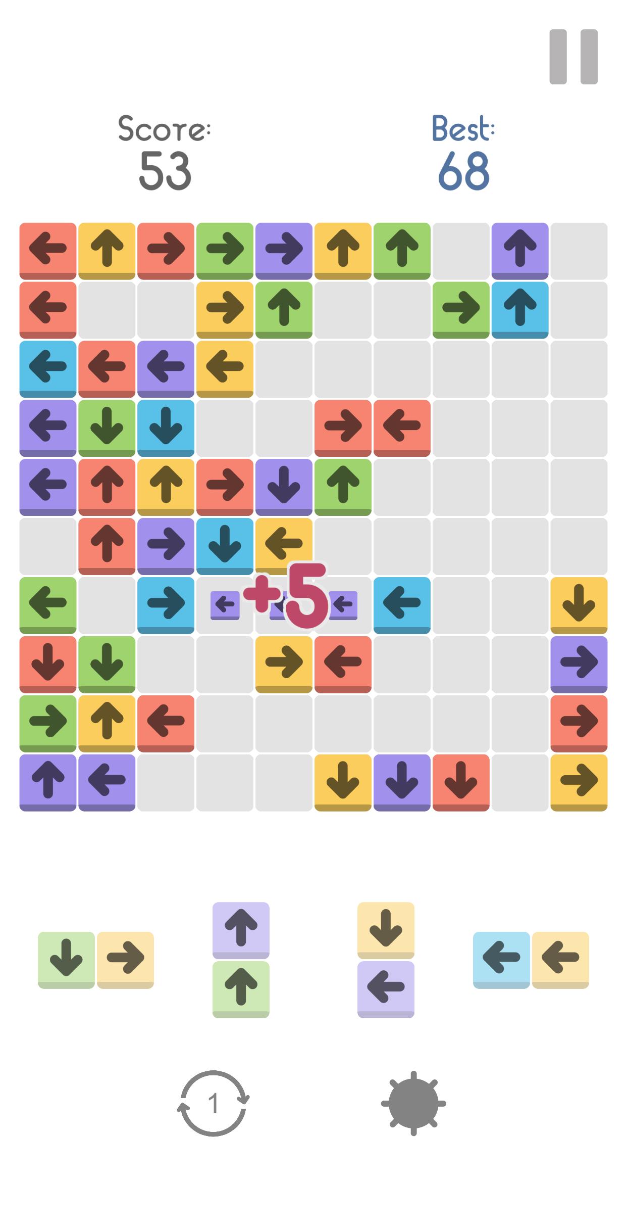 The rules of 1010! Arrows Match game are very simple - try to clean the game field from as many blocks as possible.