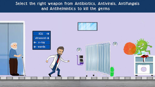 You must use the right clinical knowledge to kill the pathogens by picking the right weapon.Select the right weapon from Antibiotics, Antivirals, Antifungals and Antihelmintics to kill the germs 🦠