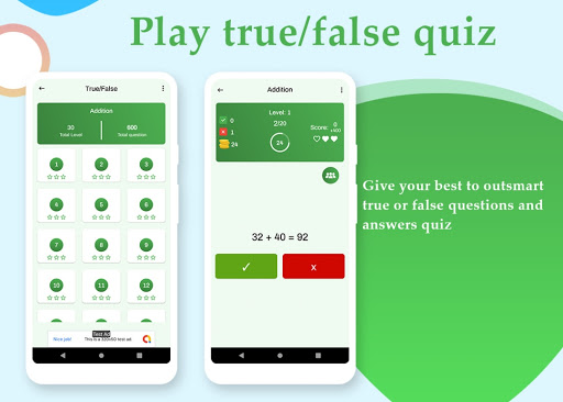-- Play True/False Quiz: This is the most interesting and entertaining way to learn maths fast. Give your best to outsmart true or false questions and answers quiz.