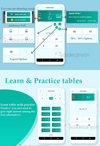 -- Learn Table with Practice: you just need to give the right answers among the four alternatives.