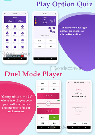 -- Duel Multiplayer Mode: Here two players compete with each other scoring points for correct answers & show off their skills.